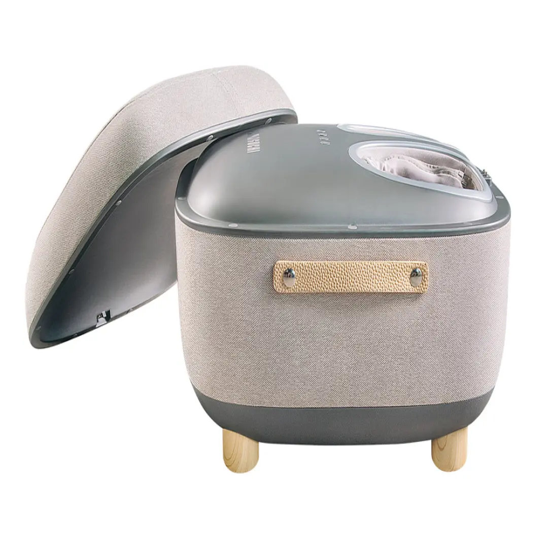 Крышка служит не только защитным компонентом, но и функциональным — содержит механизм подогрева. Так, даже в собранном состоянии, массажер будет окутывать теплом ножки, которые можно положить на него сверху.