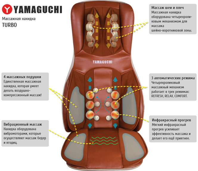 0Массажная накидка Yamaguchi Turbo Axiom представляет уникальное устройство для воздушно-компрессорного массажа ягодиц и поясницы. В его конструкцию включены механизмы, позволяющие проводить массаж по трем разным техникам с использованием роликов, вибрации и инфракрасного прогревания. Такой комплекс рабочих функций создает возможности для индивидуального подбора массажного сеанса любой продолжительности на усмотрение пользователя.