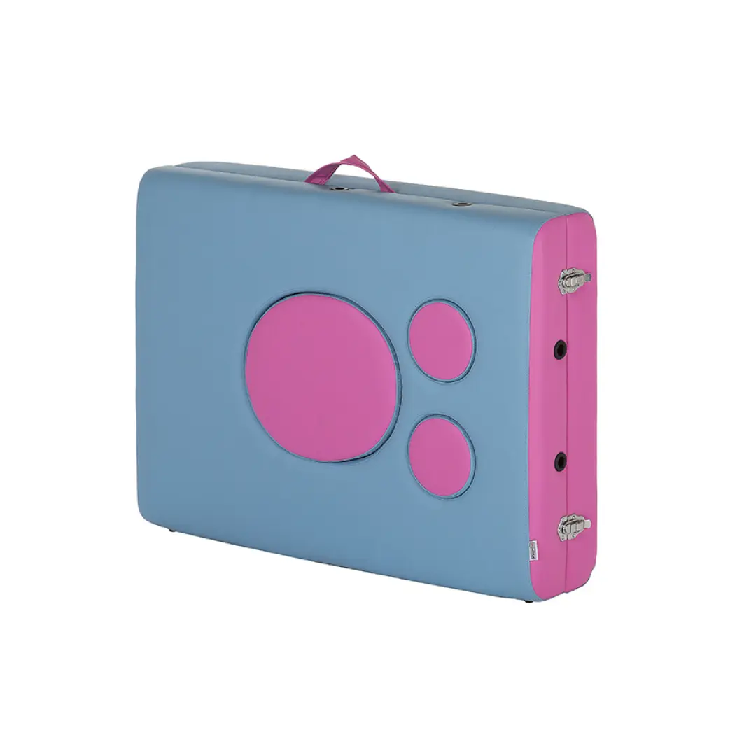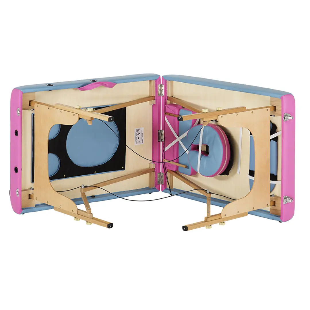 Складной массажный стол US MEDICA Panda такой же прочный и удобный в переноске массажный стол, но кроме этого в нем есть отверстия для живота и груди будущих мам.