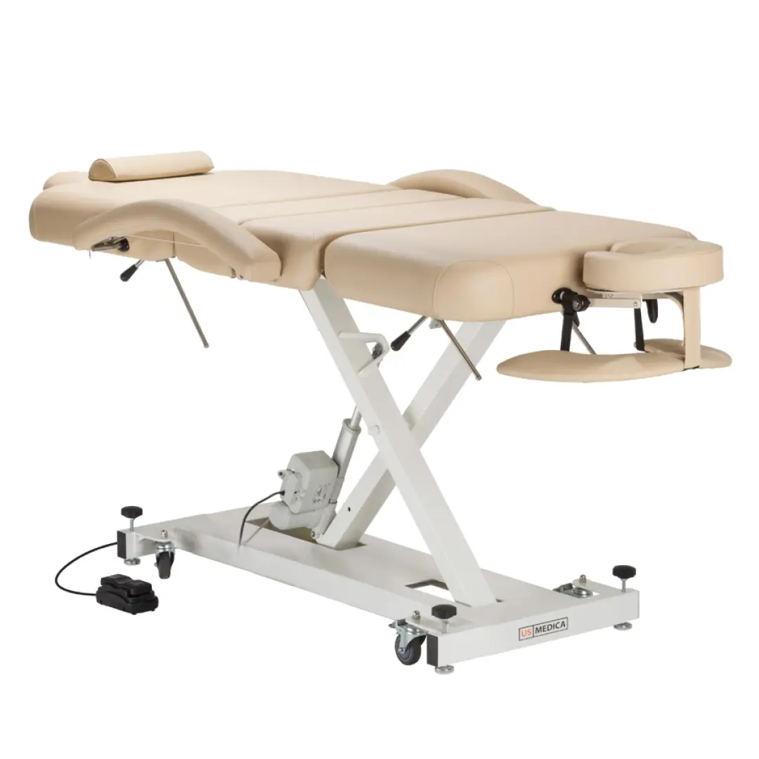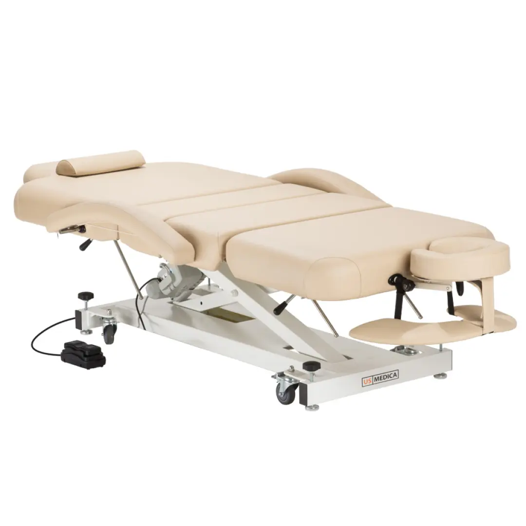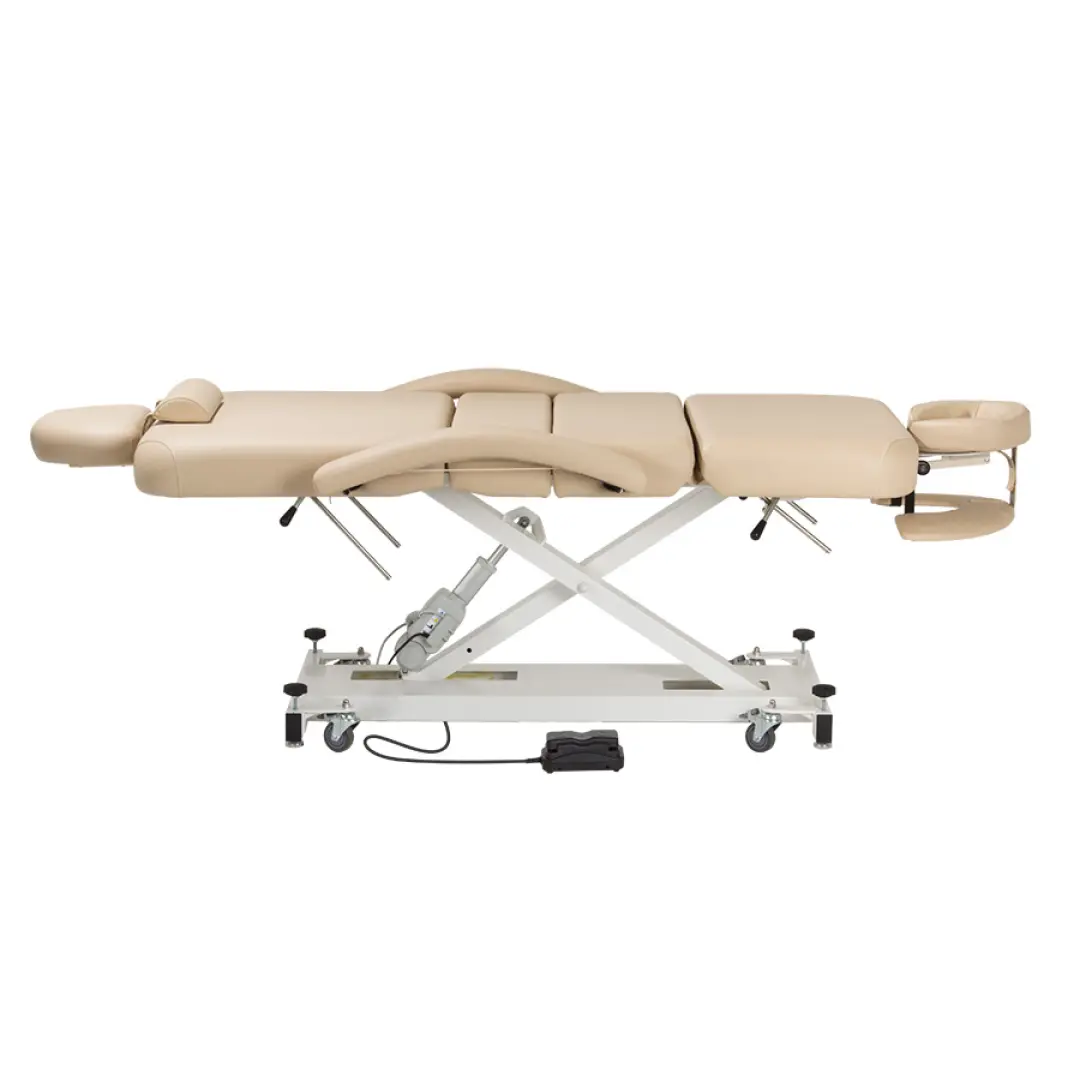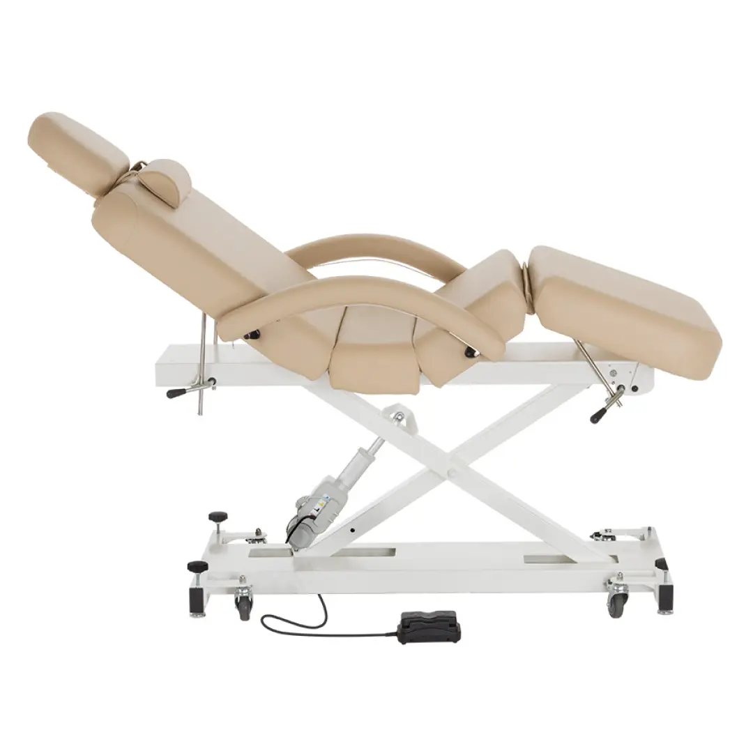 Стационарный стол который не стыдно установить в массажном кабинете, есть функция автоматического подъема и опускания лежака.