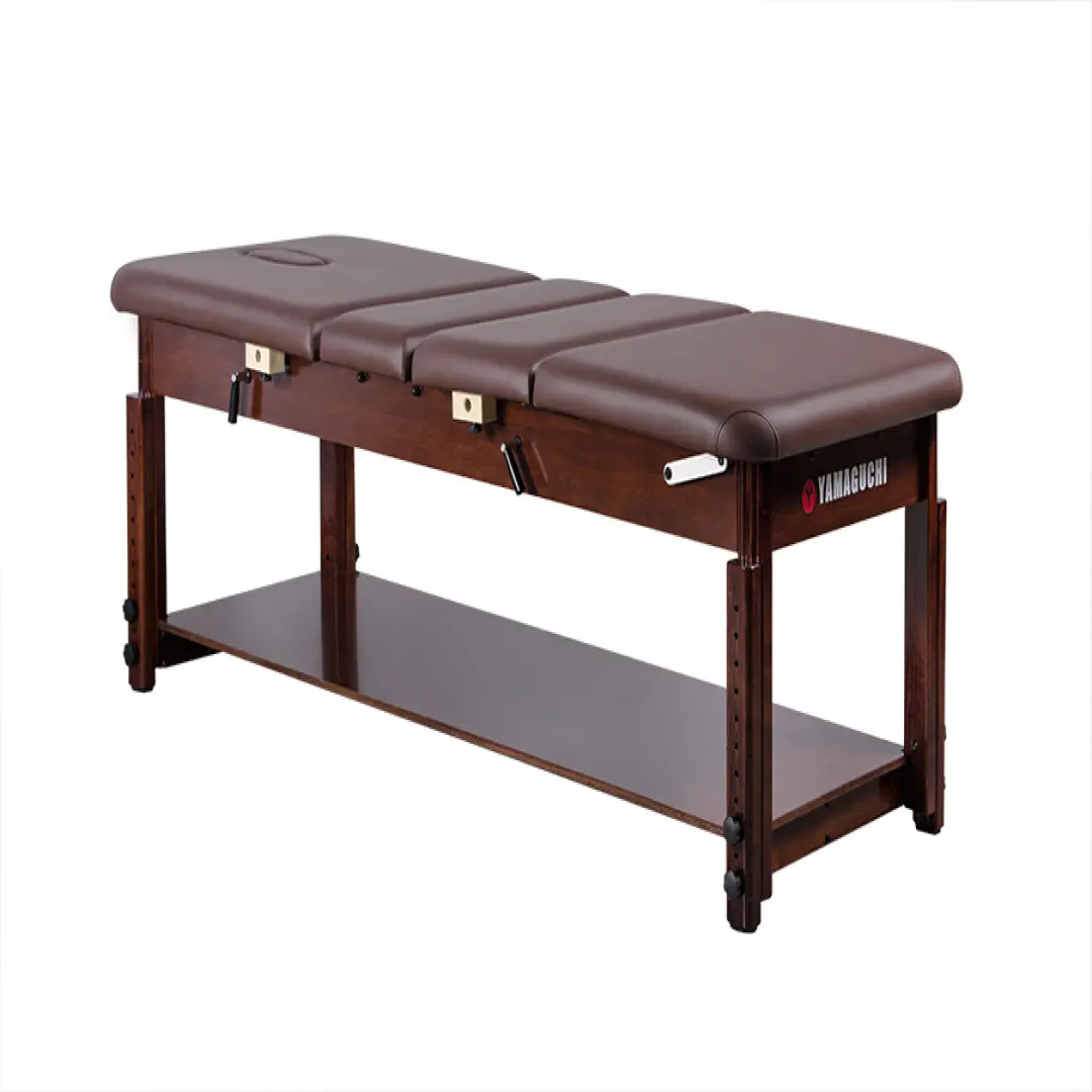 0Компанией YAMAGUCHI был представлен новый стол с большим количеством секций - Naomi. Его уникальные конструктивные особенности предусматривают наличие более упрощенного варианта регулировки секций для поднятия ног и спины. Naomi отличается своим лаконичным японским дизайном, а также комфортом и надежностью в использовании непосредственно для массажистов и клиентов.